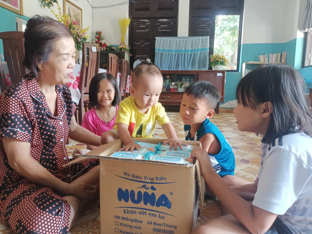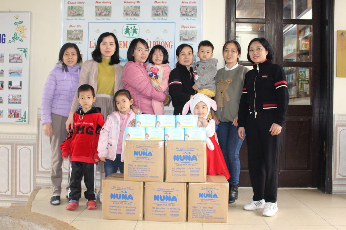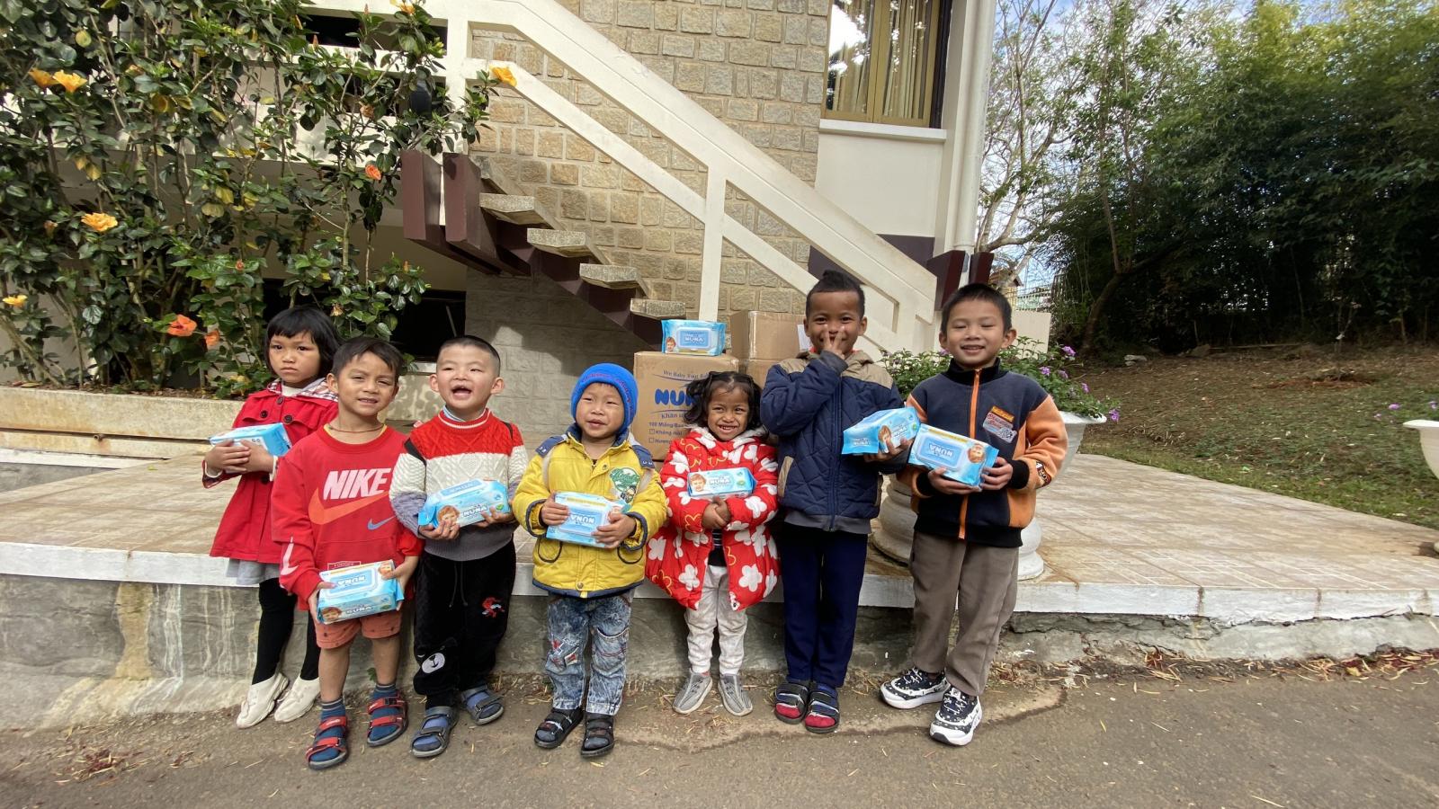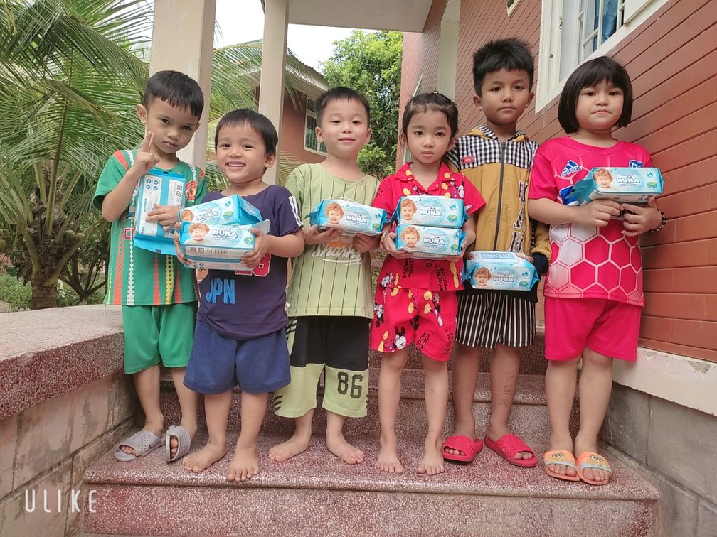 Đây là cơ hội để Yahon góp chút công sức cho xã hội, với hơn 2400 bao khăn ướt em bé Nuna đã được trao tận tay các bé tại Làng.